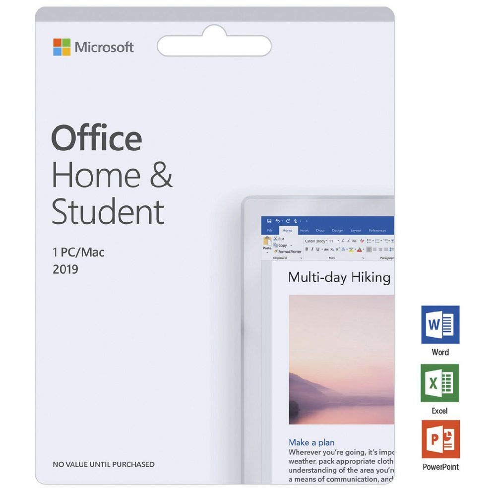 The essentials to get it all done. Office Home and Student 2019 is for students and families who want classic Office apps including Word, Excel, and PowerPoint for Windows 10. A one-time purchase installed on 1 PC or Mac for use at home or school.Your activation code will be delivered on a Key Card with detailed instruction for installing the product. 1 TB Cloud storage is not included with this item. Customers may choose to opt in and pay for the subscription on Microsoft website separately